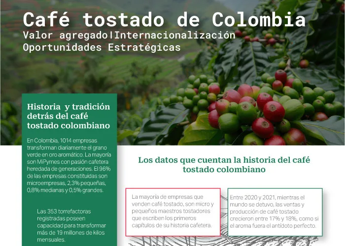 En Colombia, 1014 empresas transforman diariamente el grano verde en oro aromático. La mayoría son MiPymes con pasión cafetera heredada de generaciones. El 96% de las empresas constituidas son microempresas, 2,3% pequeñas, 0,8% medianas y 0,5% grandes.